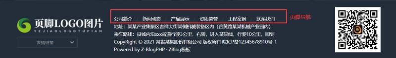 企業主題themeolQyTwo的頁腳設置中有四項需要設置,前兩項就不說了,大家一看就會,這里只說后兩項:“頁腳導航”和“更多頁腳”的設置