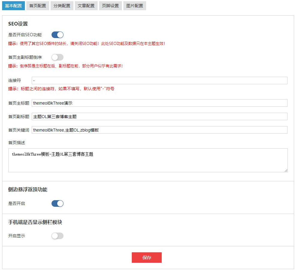 4,主題自帶SEO功能,文章和分類頁(yè)面的seo三要素都可自定義!